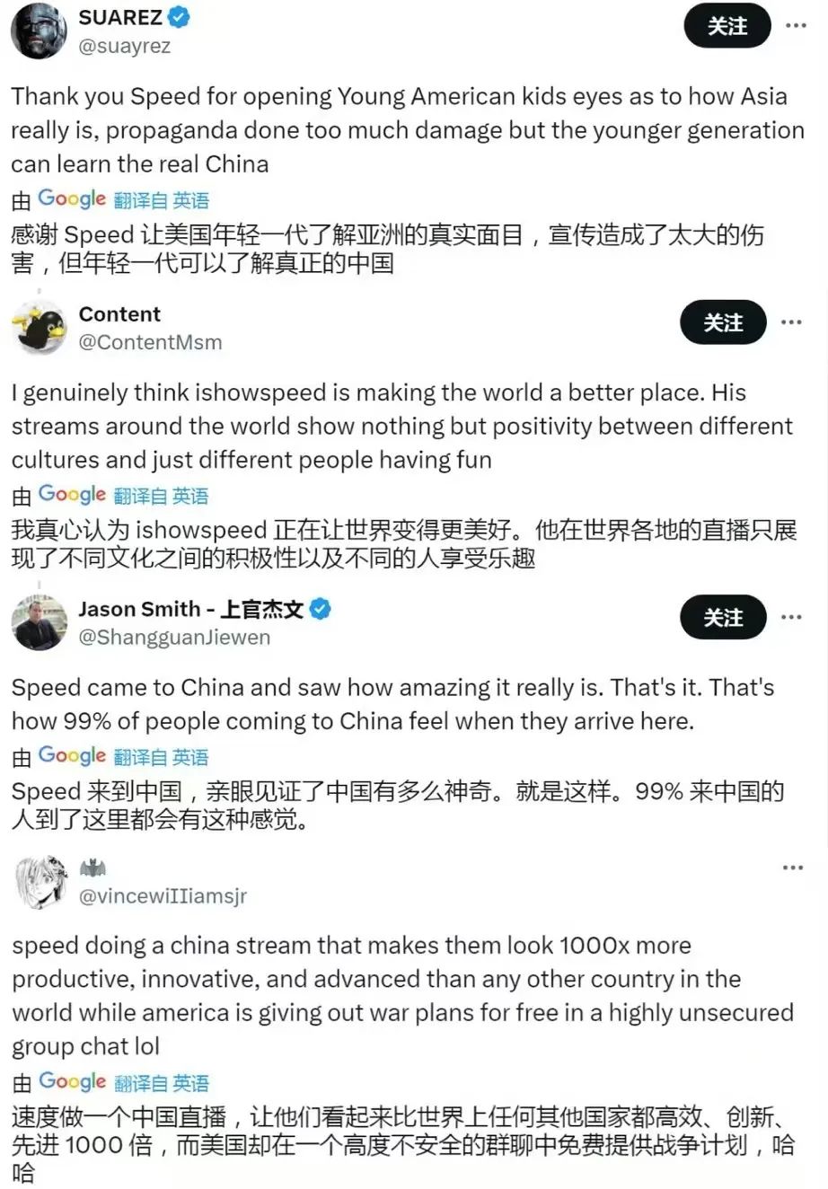 总之,Speed像是代替海外网友进行了一场中国科技与文化的“大摸底”。由于不间断直播的特殊性和Speed本人的号召力,这一次,围观的海外网友终于相信镜头对准的就是真实的中国。