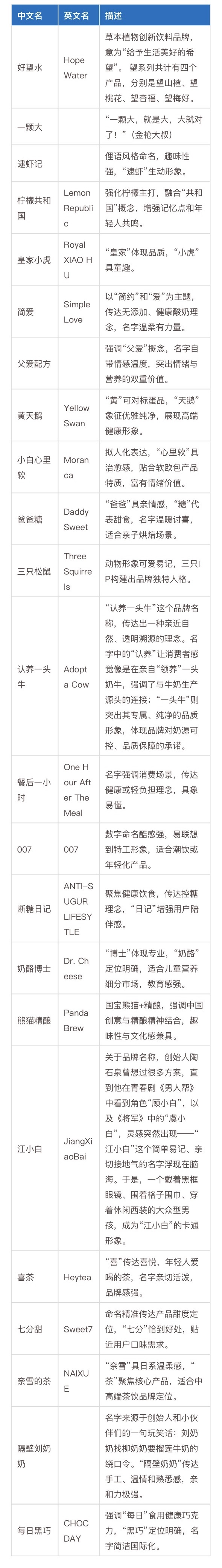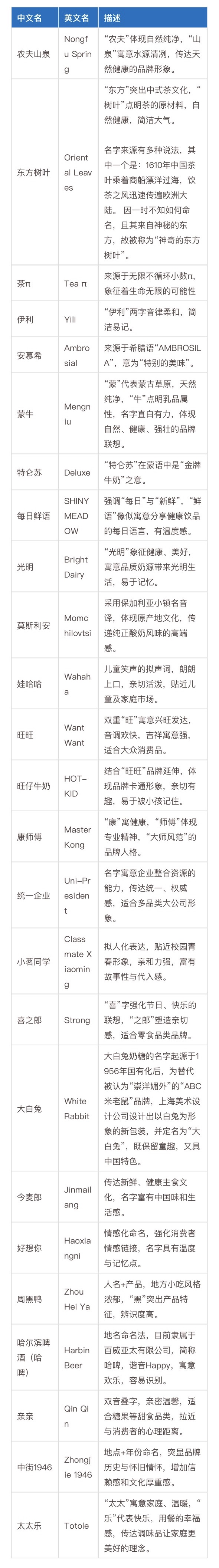 近年来,也涌现出许多新兴品牌,其名称巧妙新颖,让人一眼难忘。例如:Kind、Innocent、Beyond Meat、望山楂、柠檬共和国、一颗大、一整根、父爱配方、逮虾记、皇家小虎、小白心里软、奶酪博士、认养一头牛等等。