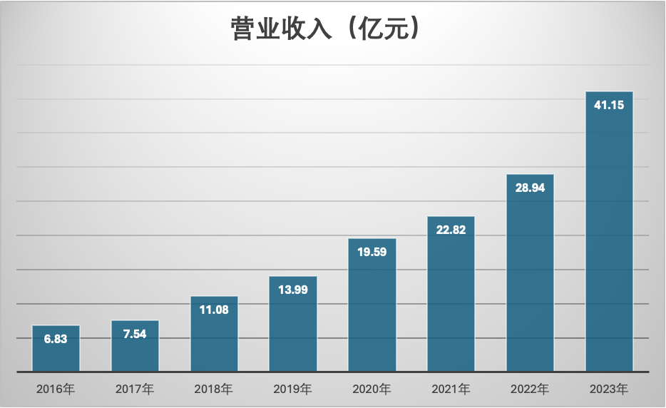 盐津铺子在2012年就创办了,在2016年上市,当年的收入是6.83亿,2023年的收入是41.15亿。