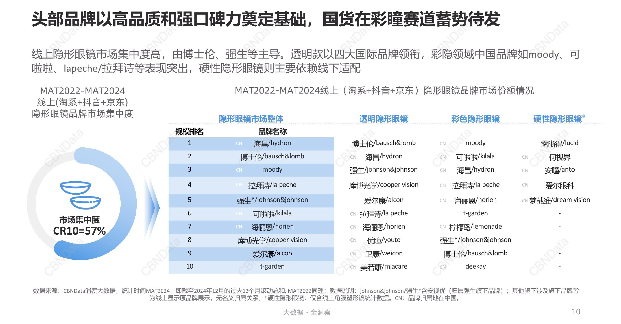从品牌格局来看,当前线上隐形眼镜市场高度集中,国际品牌如博士伦、强生以品质口碑构筑壁垒,而moody、可啦啦等国内头部品牌则通过精准捕捉Z世代审美偏好,在彩色镜片赛道中脱颖而出。
