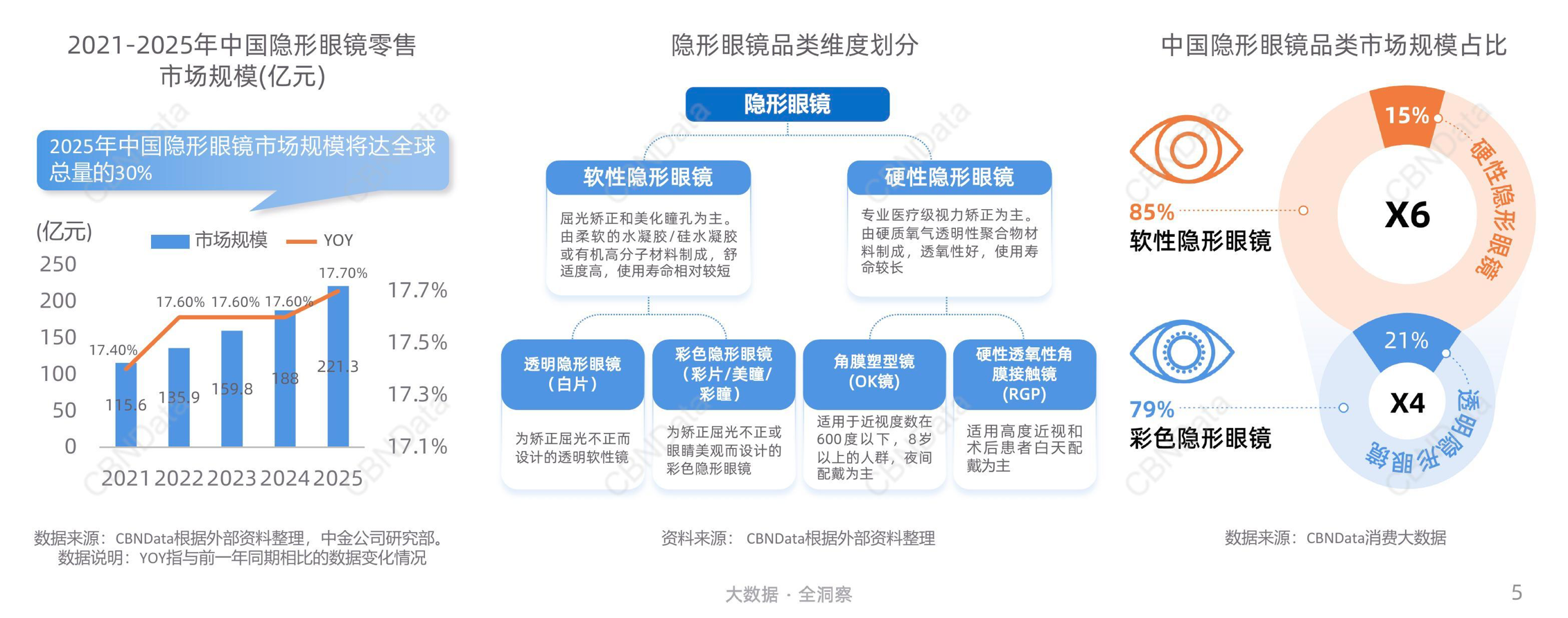 在此背景下,第一财经商业数据中心(CBNData)联合阿里健康、moody与库博光学发布《2025 隐形眼镜行业报告》(下称《报告》),全景解析隐形眼镜市场发展现状,深度梳理上中下游全产业链发展趋势,力图破除行业认知壁垒,为品牌精准捕捉增长机遇提供决策参照。