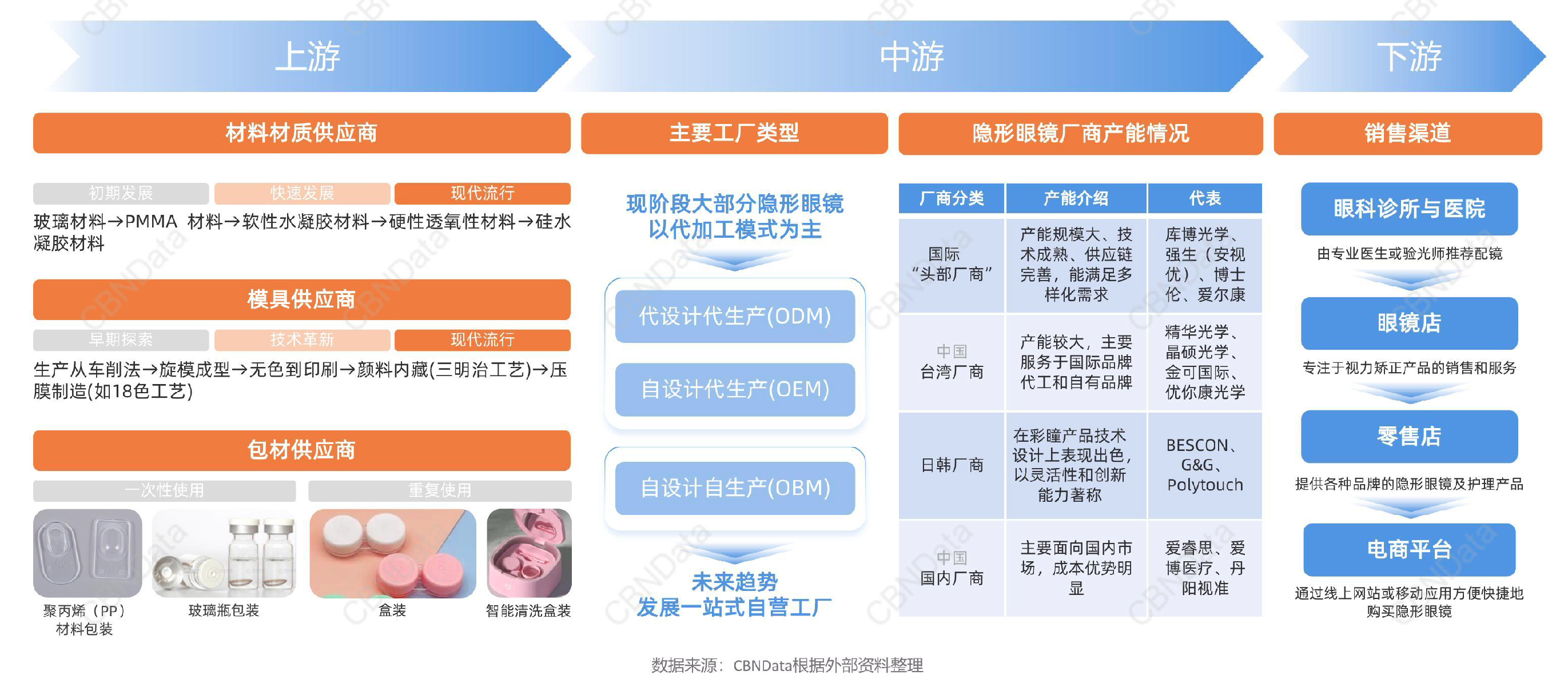 行业格局的明确、新需求的浮现,本质上驱动着产业链价值重构,眼下行业升级面临三重关键突破点:在上游材料领域,以硅水凝胶、模压工艺制造与智能护镜为主要方向。中游环节,代加工起步的企业正通过研发投入加速创新,向品牌化转型。