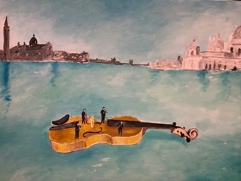 威尼斯惊现巨型小提琴木船!网友惊呼:这不妥妥的海上漂浮演奏会吗!