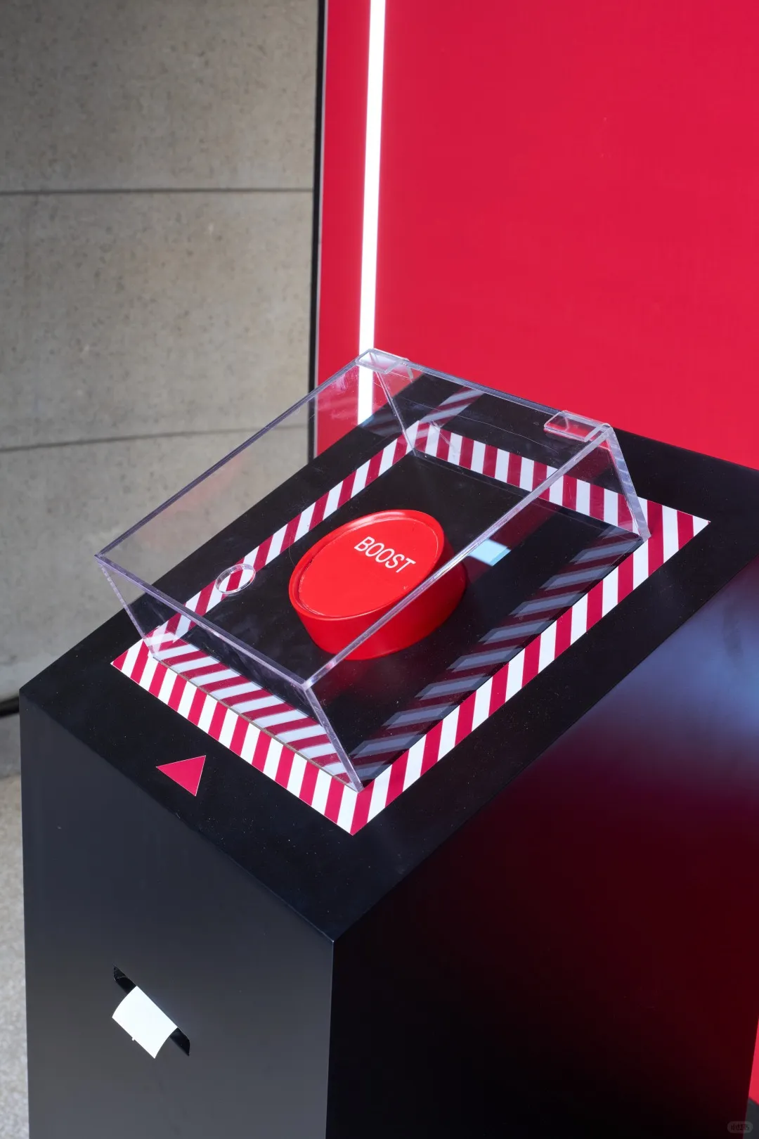 在大楼内,有一个boost装置按钮。按了之后,墙上的车子就会弹上天?