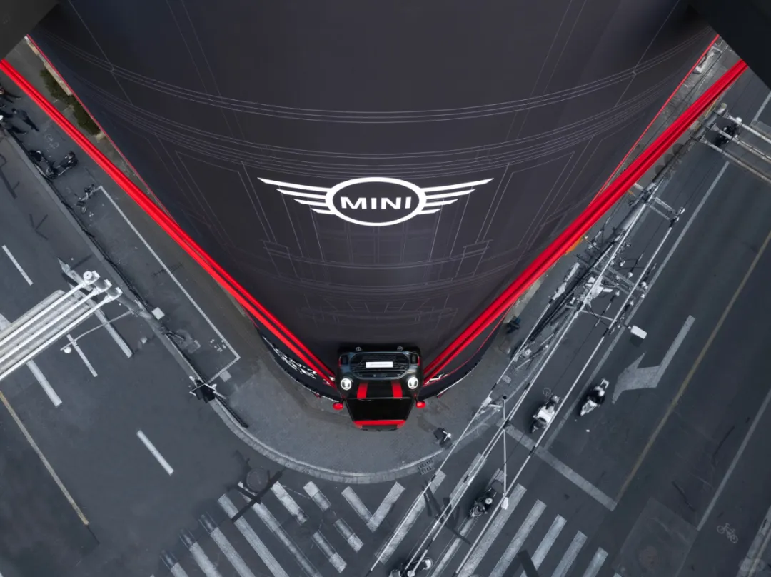 最近,一辆MINI汽车爬上了外滩大楼的外墙。