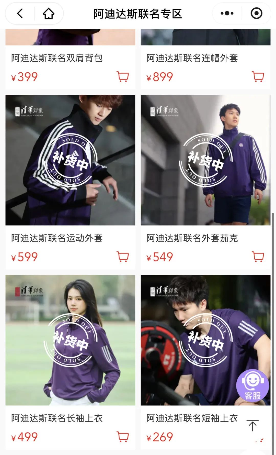 本周,有网友发现在清华大学的官方文创小程序“清华印象”中,售卖着清华与阿迪达斯联名的衣服、帽子、包包。“清华紫”搭配经典的三道杠,adidas的品牌logo和“清华”二字点缀胸前,名校精英运动风扑面而来~这穿出去想不拉风都难。
