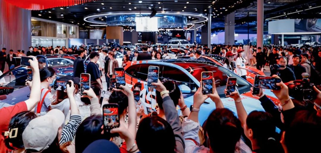 2019年上海车展上,有130多个新能源车型参与展出。而整个年度,中国新能源乘用车销量连续第二年超过百万。2023年上海车展期间,展示车辆达到1413台,全球首发车及概念车型超150台,中国车企新能源车型占到半数以上。