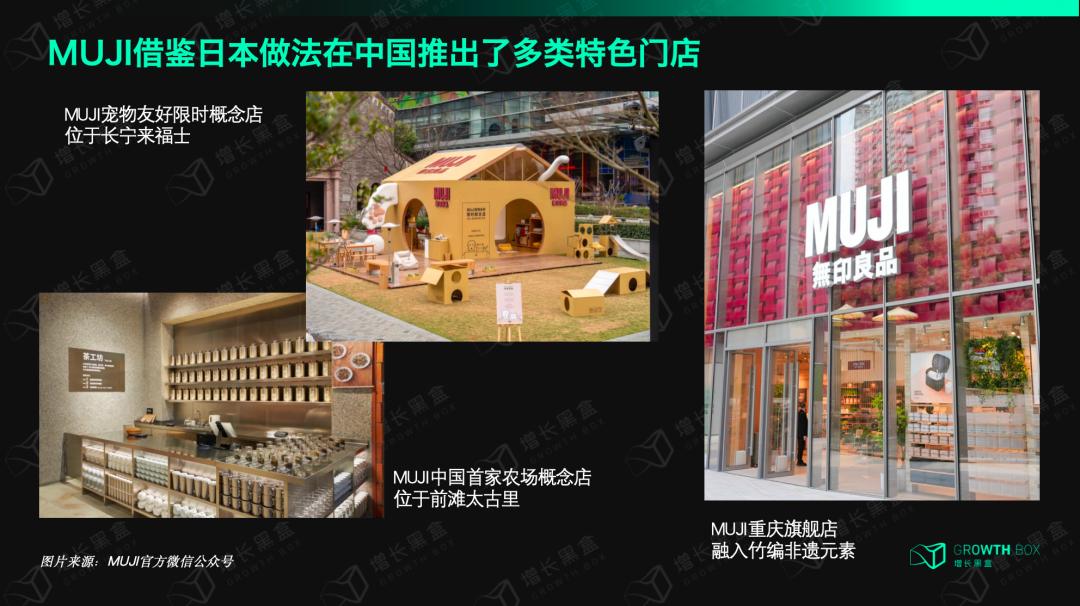 以品牌价值观为概念的固定门店。例如前滩太古里的中国首家农场概念店、静安嘉里中心的中国首家可持续概念店,通过门店展示MUJI崇尚自然、环保可持续的品牌价值观。