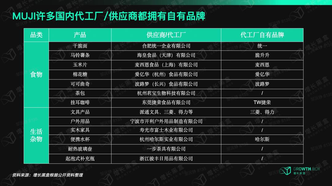 我们注意到,MUJI的国内供应商大多是细分领域的知名品牌,如统一之于干脆面,得力、三菱之于文具,波路梦之于糕点饼干,哈尔斯在保温杯行业已是头部,麦西恩是玉米片知名品牌,捷荣的奶茶咖啡在港澳知名度很高。还有代工厂推出白牌品牌,例如海皇食品旗下的脆升升。