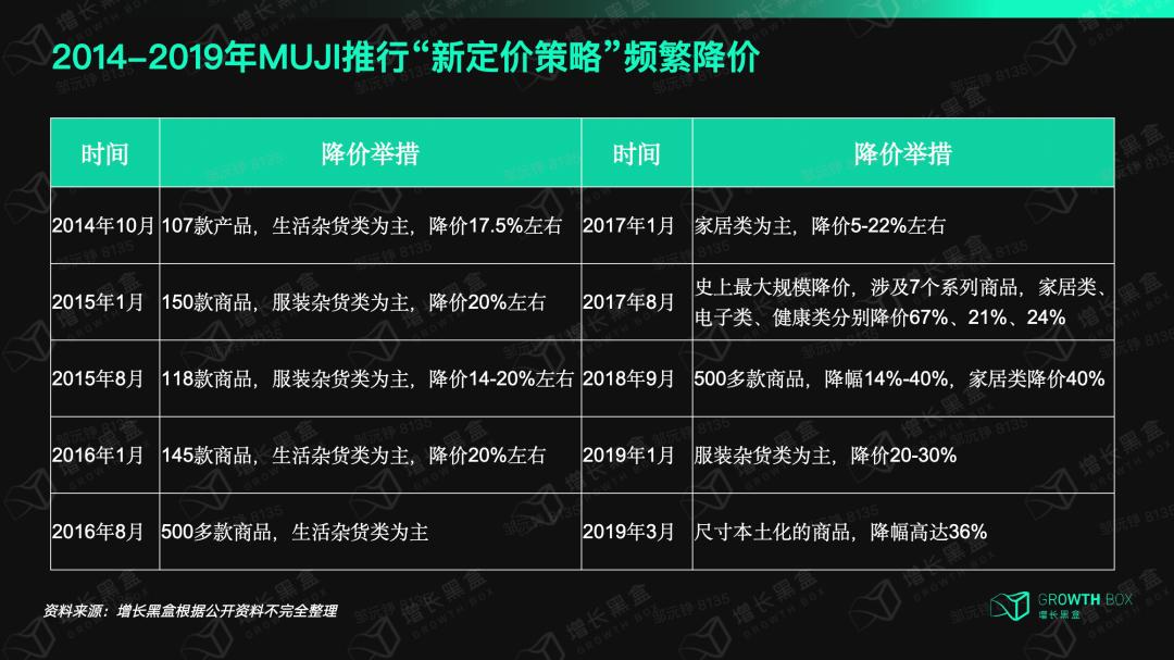 在外界的解读中,MUJI变得更便宜,是其重获增长的重要原因。但我们研究后发现,MUJI的价格策略经历了多轮调整,单纯的降价并没有为其带来转机,反而是价格策略、产品策略、渠道策略的全面本土化,才让MUJI扭转颓势。
