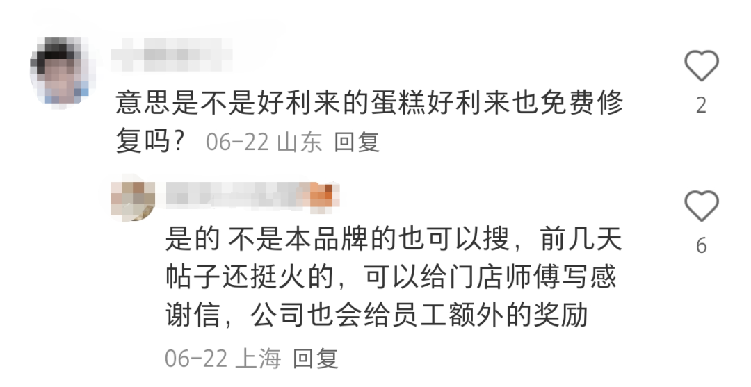 其实这个服务并不是最近才有的,有网友表示,好利来十几年来都是免费修补,只是最近突然火了。