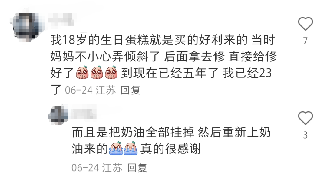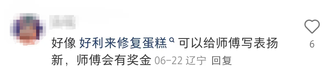 这事儿一出,就有很多人开始讨论。有人表示,自己也在好利来修补过蛋糕,感叹那些“复活”了自己蛋糕的神仙员工,真的配享太庙!