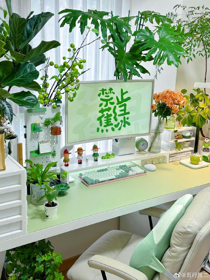 高压下的年轻人也很需要治愈和放松,有人喜欢在猫咖狗咖撸猫撸狗,用毛茸茸的触感缓解焦虑,有人斥巨资在办公室布置微景观香薰灯、标本键盘,打造治愈工位……这些生机满满的事物都是对抗机械工作的“情感代偿”。