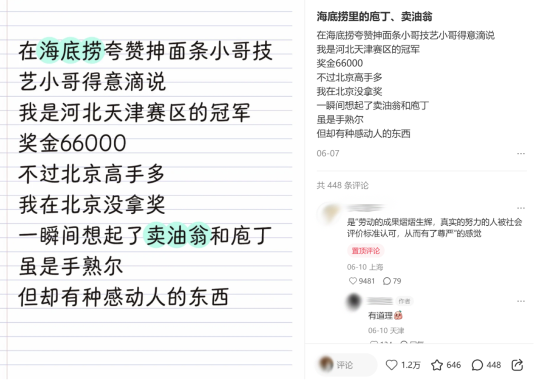 不过,要说“打赏”这事搁海底捞,也不算太离谱——毕竟现在去海底捞吃饭,已经像是走错片场,走进了民间艺人交流大会。