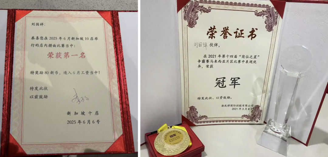 海底捞从2016年起就设立了“岗位之星”的内部比赛。在9月左右举行各店内初赛,经历区选赛,大概在来年4月举行全国总决赛。刘国祥在加入海底捞不久后,就参加了“捞面岗位之星”的选拔,还获得过片区的多个冠军。