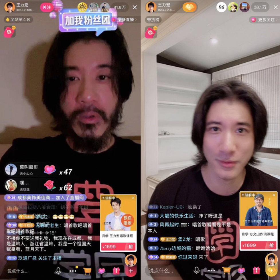 吴彦祖与杨澜之前,音乐人王力宏在2021年同样售卖过音乐课程,定价还比汪峰高了不少——售价1699元的王力宏本人唱歌课程,售价1699元的方文山作词课程。彼时,为了推销课程,留着络腮胡的王力宏还在直播间表示,只要销量过了3000,他就直播剃胡子。