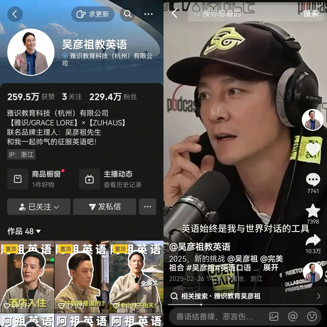 今年2月,抖音和小红书等社交平台上,吴彦祖开设了名为“吴彦祖教英语”的账号,并且宣布自己开设了一门英语课程,要教大家学习“地道英语”。