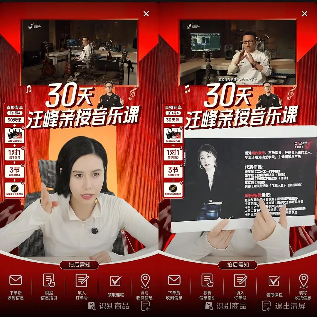 这位曾以《春天里》等歌曲出名的摇滚歌手,如今摇身一变成了“未来音乐学院”的创始人,一边直播唱歌,一边在直播间卖起售价299元的音乐课。在未来音乐学院的直播间中,主播表示,购买汪峰的音乐课,并不只是单纯购买到了学习机会,还藏着让普通人进入娱乐圈的机会,“优秀的学员可以担任汪峰的演唱会伴唱,加入汪峰老师的团队,获得更多资源”。