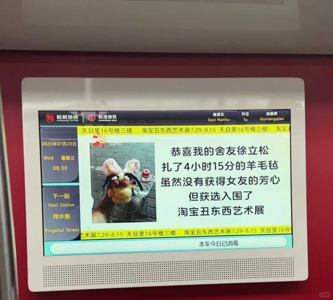 最近杭州地铁里惊现新笑料,淘宝丑东西艺术展的展品不仅公开了入选来源,连提供者的信息都毫不遮掩地亮了出来。