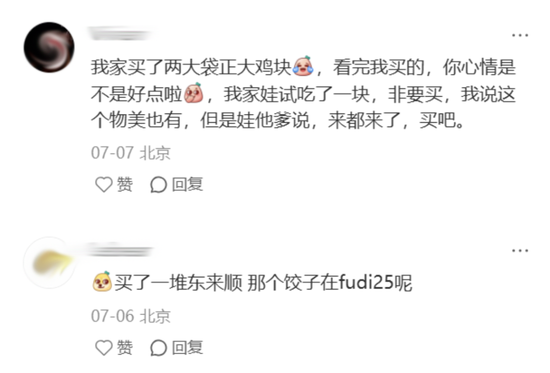 你去盒马、山姆买冷冻食品,买的首先是中产囤货的体验感。