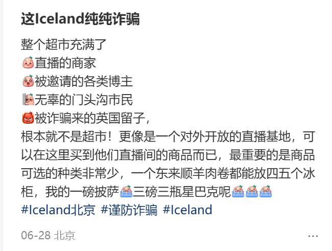 Iceland在北京开业后的短短三周内,收获了一大批“来了,再也不会来”的评价。