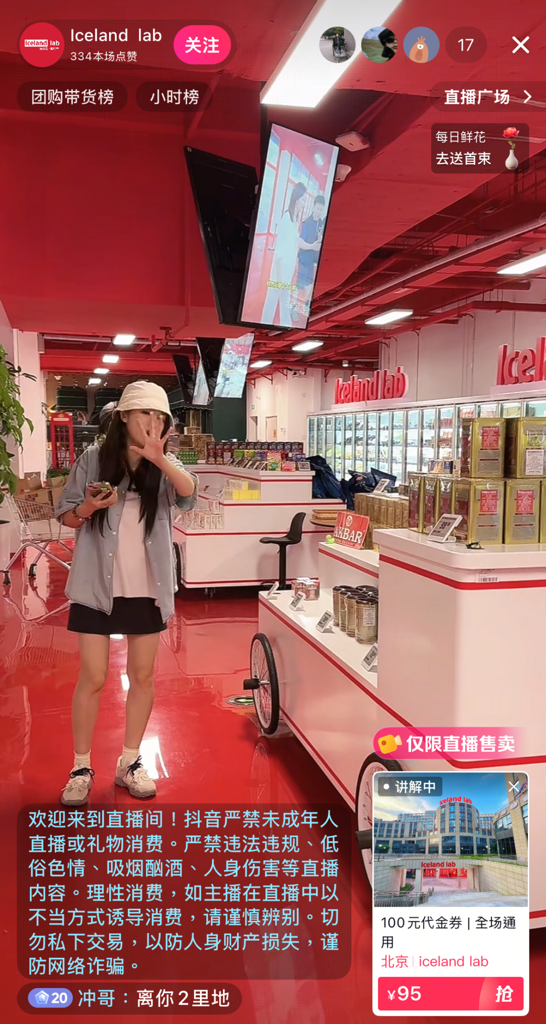 Iceland的线下门店叫Iceland Lab,实验室,实验的是一种前所未有的卖货模式:集供应链、MCN、AI(暂未发现用在了哪里)为一体的,带有零售功能的线下直播基地。