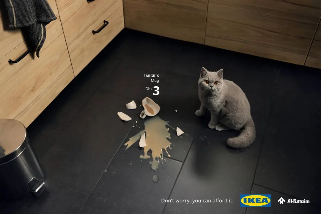 如果说孩子学步时刻是每一个家长都愿意回忆的温馨时刻,那家里的闯祸精宠物打碎了花瓶、咖啡杯、碗等糟心时刻,宜家是如何巧妙运用的呢?