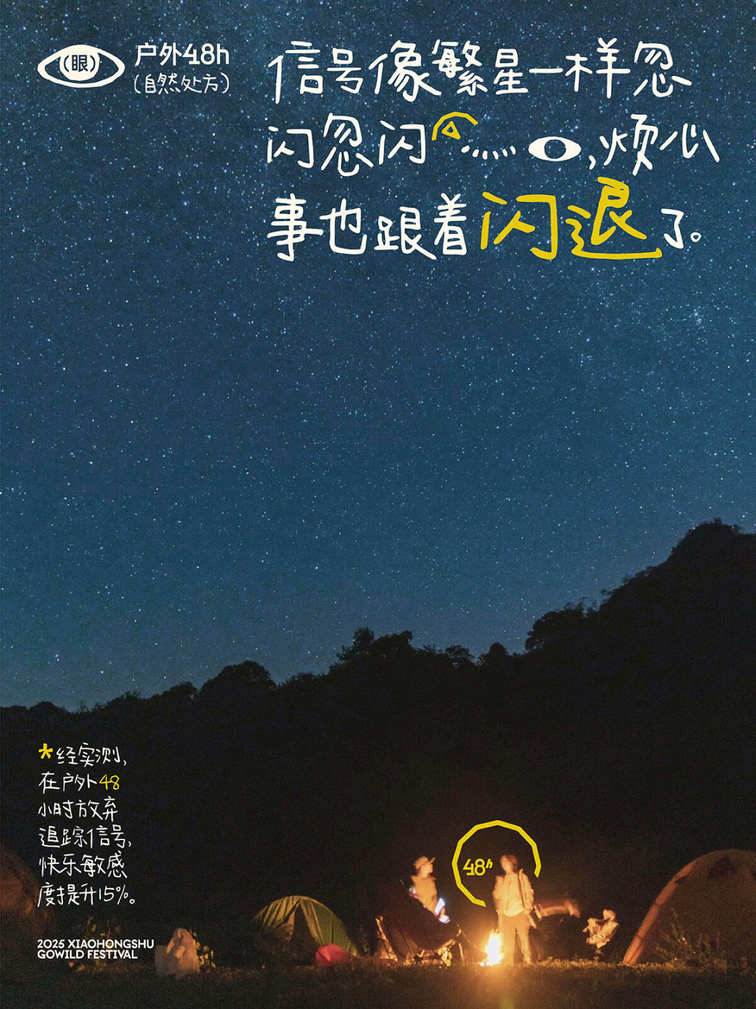 活动的灵感来自上个世纪,新西兰提出“自然处方”计划,即让人们在户外待上两天,身心健康得到明显改善。这次小红书的 “户外48小时”活动,就是这样一剂“自然见效”的绿色处方。