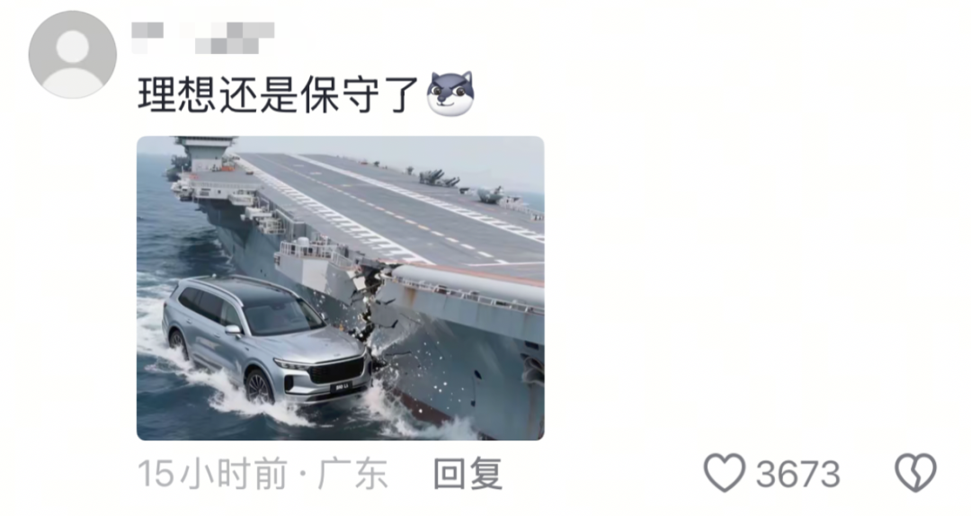 不少网友P图玩梗,让理想汽车撞工程车,撞航空母舰。