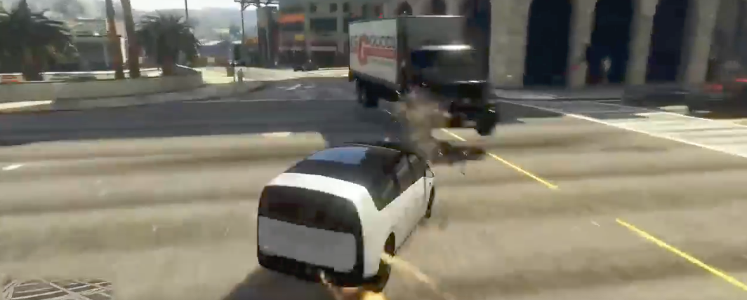 网友在《GTA(侠盗猎车手)》游戏中模拟小轿车撞卡车,在主角光环下,玩家驾驶长得像理想汽车的小轿车,轻轻松松把卡车创飞好多次~