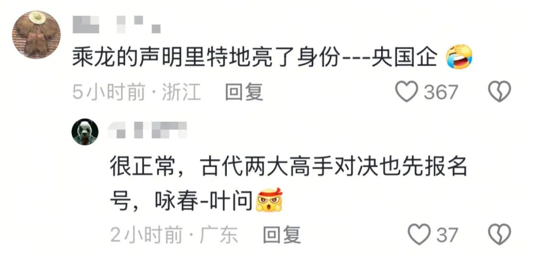 网友注意到,乘龙的声明里还特地亮了“央国企”的身份。
