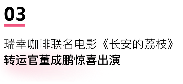 继6月中旬瑞幸咖啡与电视剧《长安的荔枝》的合作之后,最近,瑞幸咖啡又联名同名电影, 发布新宣传片推广系列饮品“长安的荔枝冰萃”和“长安的荔枝冻冻”。