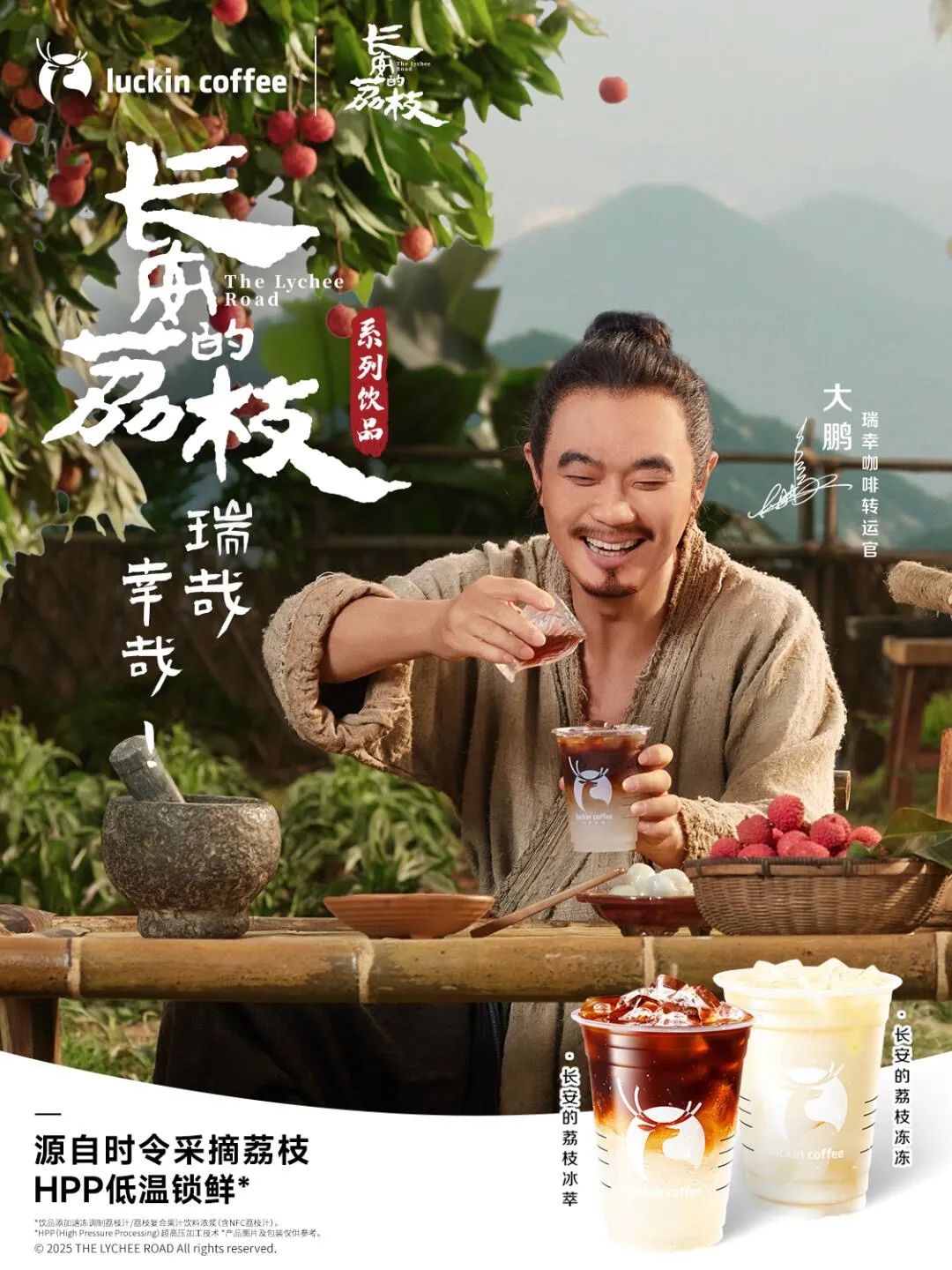 电影男主“荔枝转运使”李善德的扮演者董成鹏惊喜出演该片。以电影中的角色设定为基础,宣传片创意打造了个李善德跨界研制 “咖啡+荔枝”饮品的配方故事。片中,他这样形容荔枝冰萃:初尝如长安万里,回甘似杜少陵诗;“咖”字两张嘴,一张品苦,一张尝甜。