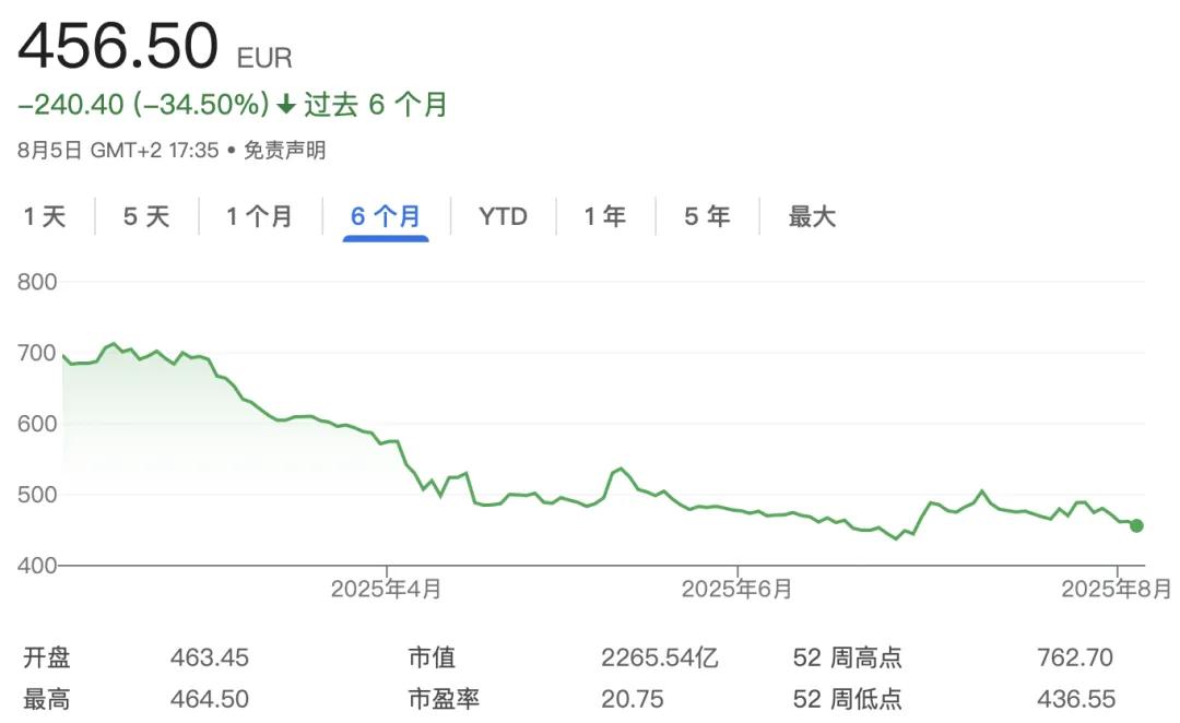 开云集团2025年第二季度营收为37亿欧元,同比下降15%,未达市场预期。其上半年总营收同比下跌16%,净利润更是大跌46%。作为集团收入支柱的Gucci第二季度营收同比大跌26%,这已是Gucci连续6个季度销售下滑。YSL二季度营收则同比下降13%。过去两年内,开云股价已累计下跌近60%。