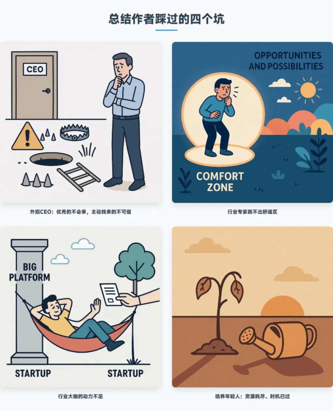 下面,先从我自己招募和培养CEO踩过的四个坑说起。