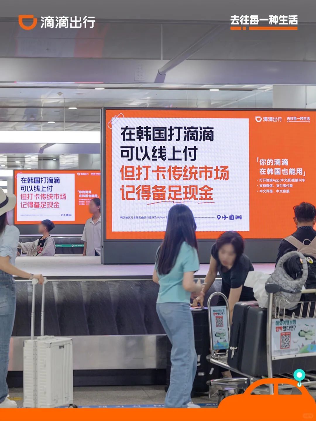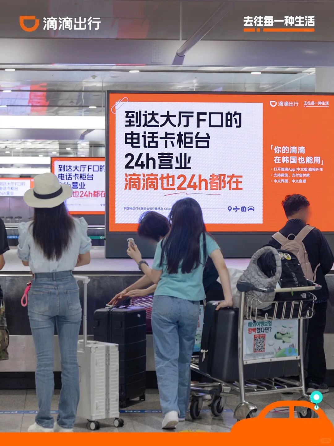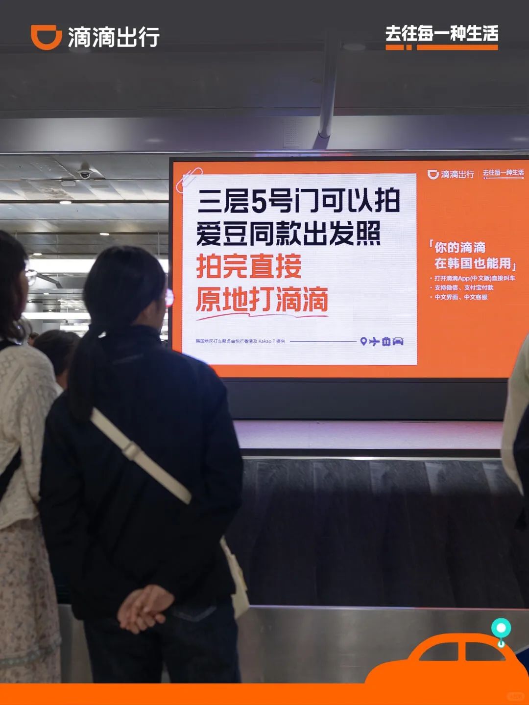 “小韩”旅游热叠加 暑期旅游旺季,8月初,滴滴出行在韩国首尔的仁川机场投放了一组精准锁定中国游客的海报。