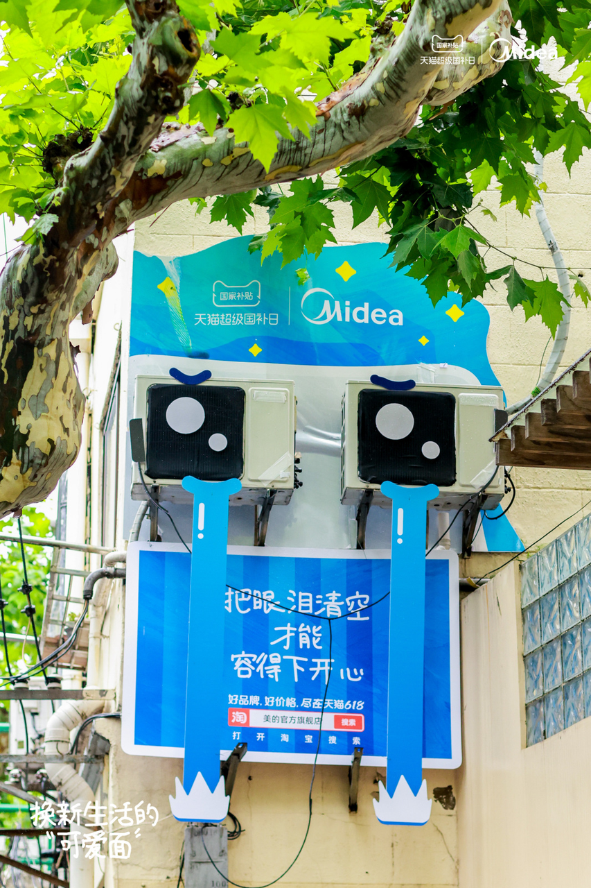 恰逢六一儿童节,美的与天猫以“换新”为主题,在上海市徐汇区延庆路举办了一场可爱表情展,提升美的品牌的话题度和搜索量。品牌用善于发现美的眼睛和丰富的想象力,将空调外机创意包装成有故事的可爱表情,既用城市街景强化了家电“换新”的心智,也呼吁大朋友们释放真实自我——再当一回小孩,把惊喜、勇敢、悲伤都写在脸上。