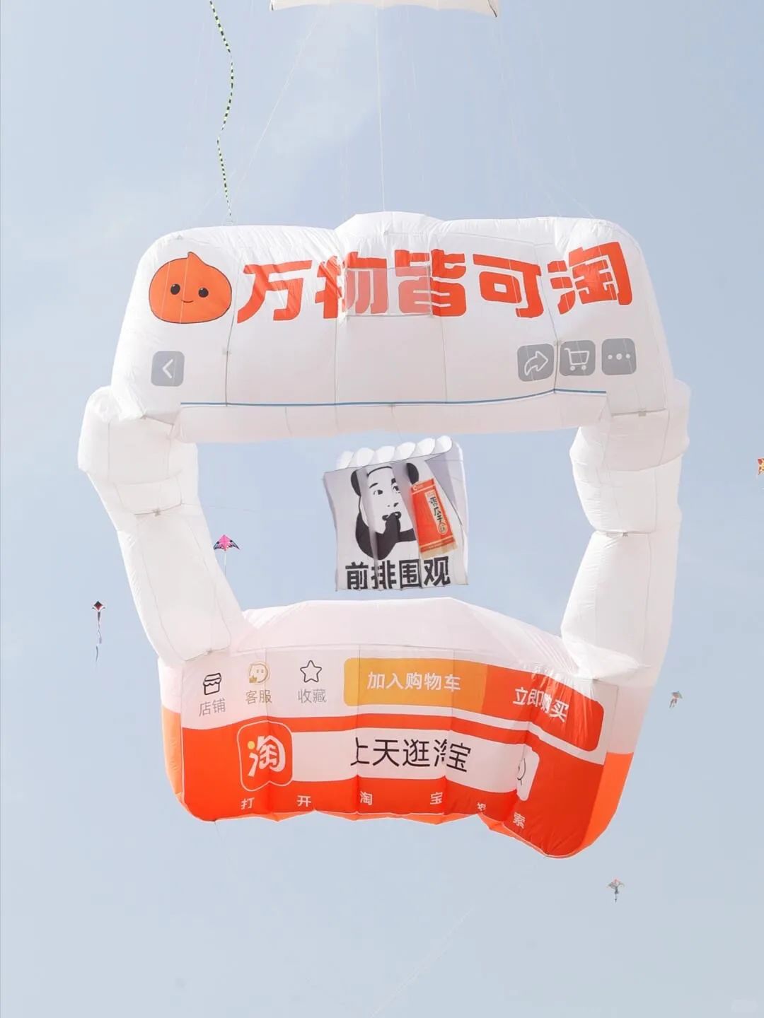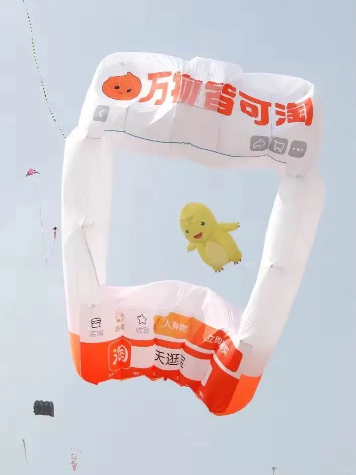 从一串葫芦娃、一艘航空母舰,到今年品牌创意风筝齐飞……正应了那句话,在潍坊,没有什么东西是飞不起来的。这其中,“显眼包”淘宝将人们再熟悉不过的商品框送上天,以“上天逛淘宝”的脑洞创意,玩起了“强制爱”——爱它就框它,霸道上架空中所有品牌产品。