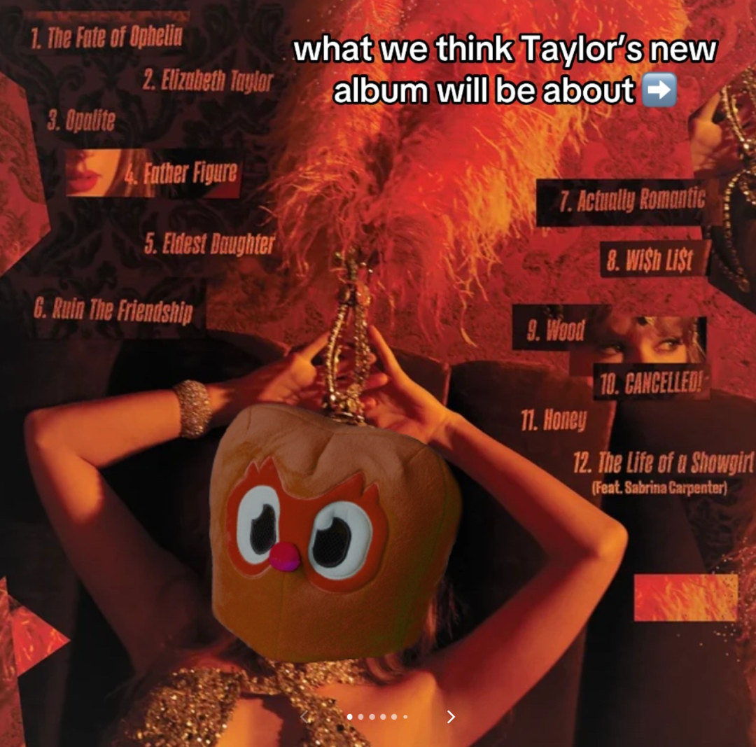 多邻国的吉祥物猫头鹰穿着奇装异服,在办公室里尬舞,会追星(,还会 P 图、吐槽、玩 TikTok 热门挑战。很多视频制作粗糙,用的就是平台原生滤镜、贴纸和背景音乐,但信息量大、随性即时,反而让用户觉得真实、有趣。