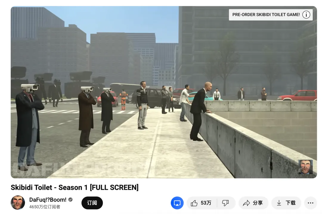 YouTube 上爆红的 《Skibidi Toilet》 ,讲的是马桶人和摄像机人之间的荒诞大战,视频里充满了快节奏剪辑、怪诞画面、荒谬设定,看似杂乱,但也是一种极繁主义的表达:不断堆叠的信息量和夸张的视听刺激,才让观众欲罢不能。
