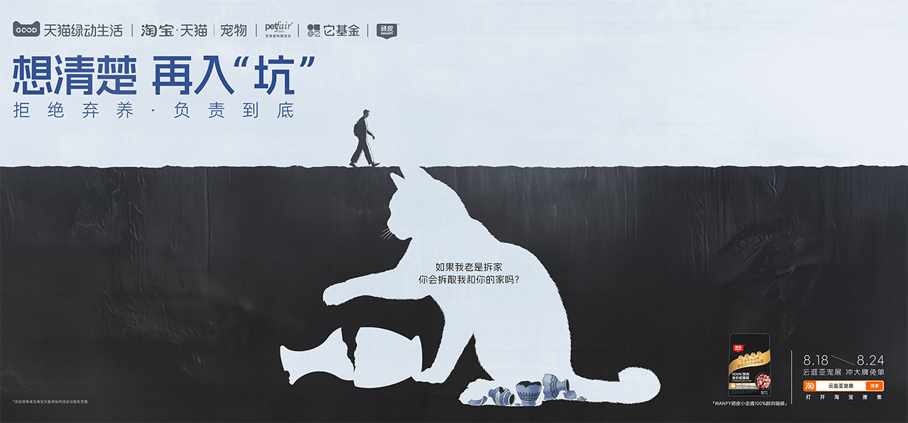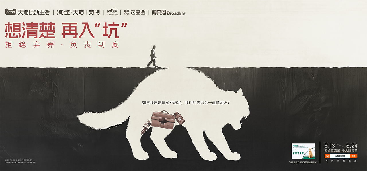 在情绪价值被高度关注的当下,萌宠成为了这一代年轻人的心灵鸡汤,社媒上随处可见的猫片狗片,让无数人都对毛孩子的陪伴心驰神往。然而,这份看似美好的「双向奔赴」,却暗藏着不容忽视的危机:跟风式养宠带来的现实心理落差,导致了大量无辜生命被抛弃。数据显示:我国流浪猫狗数量超1亿只,超七成源于人为弃养。为此,天猫绿动生活在国际流浪动物日之际发布了一组「劝退」海报,用犀利的现实提醒大众:养宠,可能是一个巨大的「坑」。