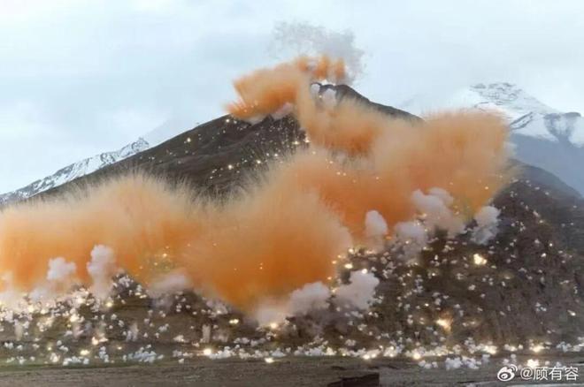 上周五(9月19日)晚上,蔡国强在西藏喜马拉雅山脉江孜热龙地区(海拔约5500米),燃放“艺术烟花”。现场视频显示,火药爆破在山脊点燃三幕烟花,形成“升龙”动态景观。