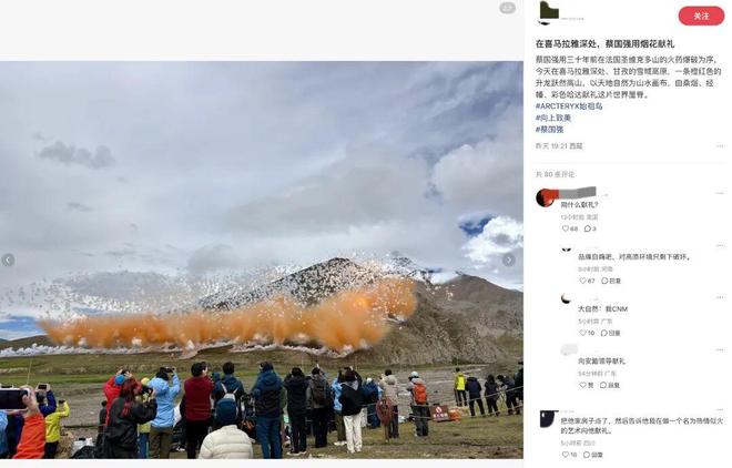 网友8:我在我家门口放烟花都不让,有人居然能跑到喜马拉雅放。在高原,生态这么脆弱的地方放烟花,已经没底线了。你参与了一场对西藏高原自然破坏的现实案例。
