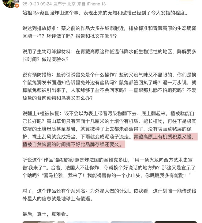 网友1:请蔡国强先生到始祖鸟的发源地,加拿大海岸山脉直播一场烟花秀。