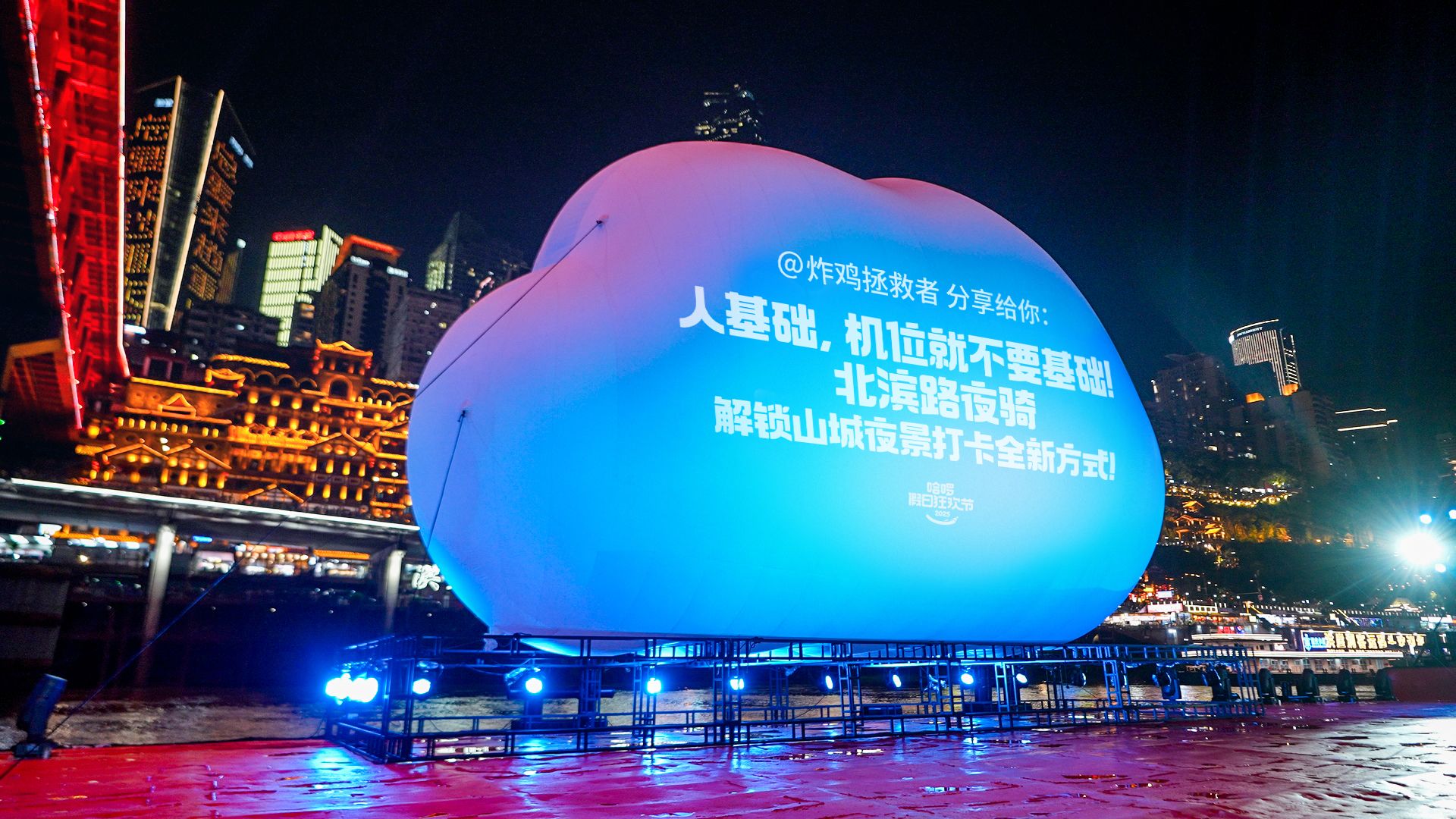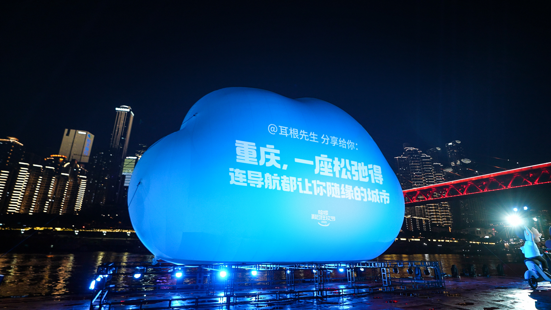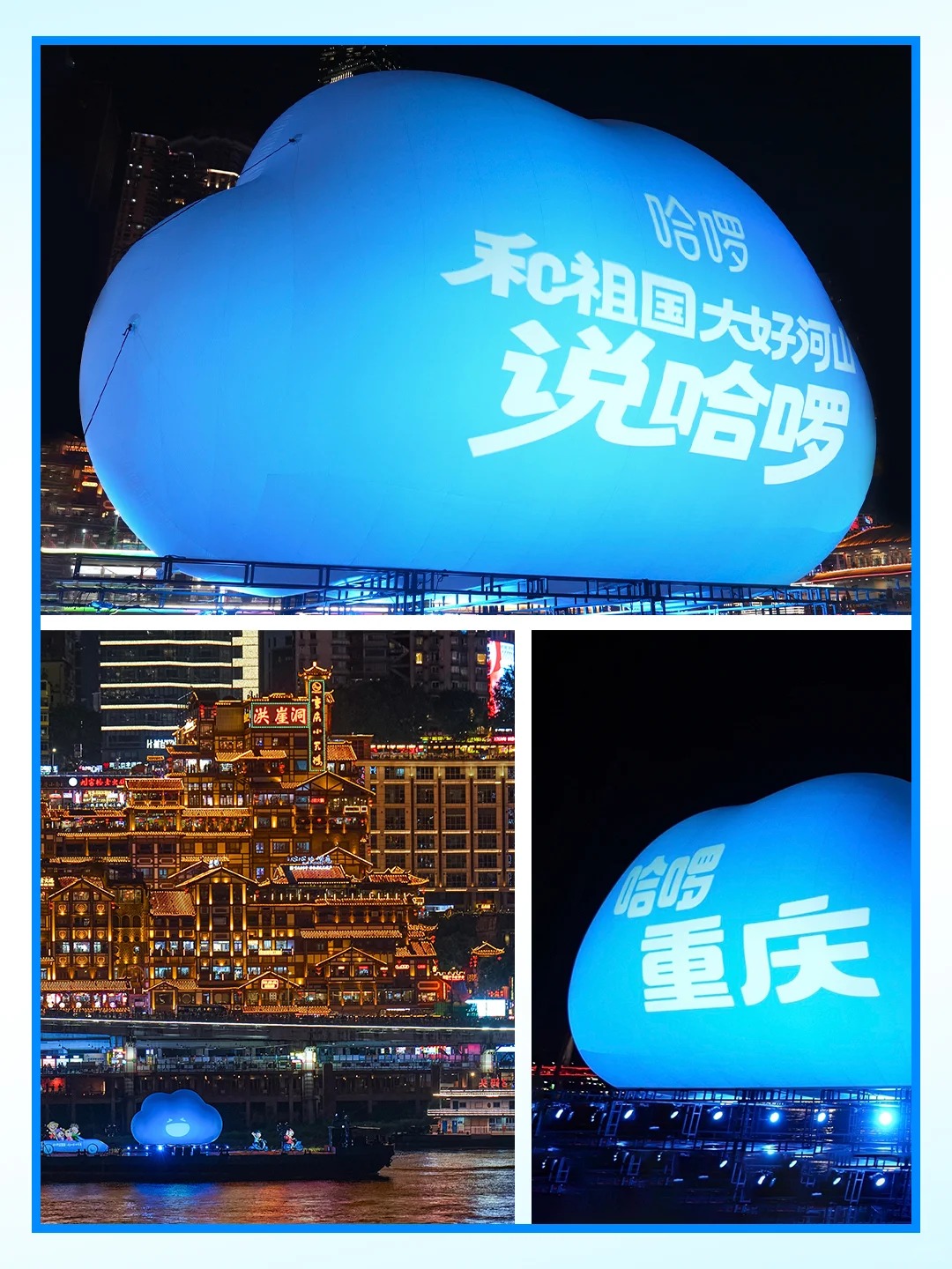 从活动设计来看,“哈啰号”游船并非单纯的“品牌展示道具”,而是承载了“移动文旅地标”的功能——游船从重庆启航,沿长江行进2000多公里,历时20天途经宜昌、岳阳等城市,最终抵达上海,串联起长江经济带的核心文旅城市。船上设置的顺风车、租车、单车巨型装置及“对话气泡”互动云屏,结合沿岸夜景打造的“光影艺术展台”,进一步激活了“夜间经济”场景,让用户在欣赏长江夜景的同时,自然感知哈啰的品牌存在。