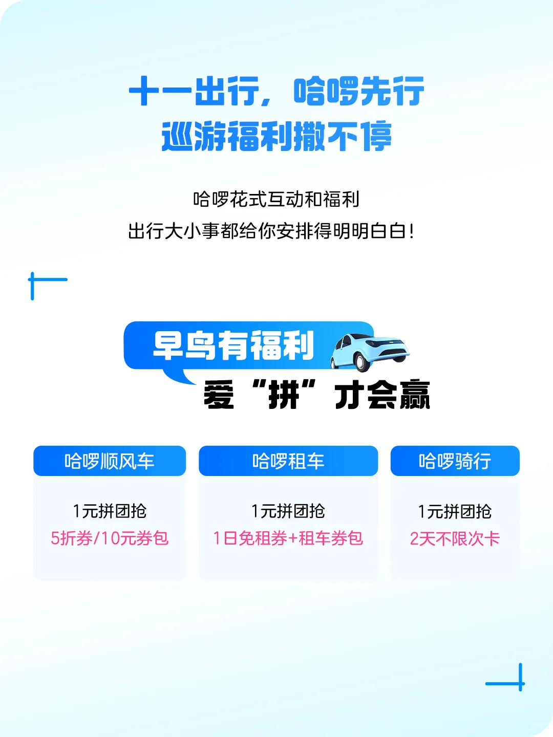 出行需求的多样性决定了单一业务线难以覆盖所有用户——国庆期间,有人需要“跨城顺风车”,有人需要“本地租车自驾”,有人则偏好“短途骑行”。哈啰此次采用“租车+顺风车+骑行”三大业务线联动的策略,形成“集团军作战”的优势,既覆盖了不同用户的出行需求,也避免了单一业务营销的“单薄感”。