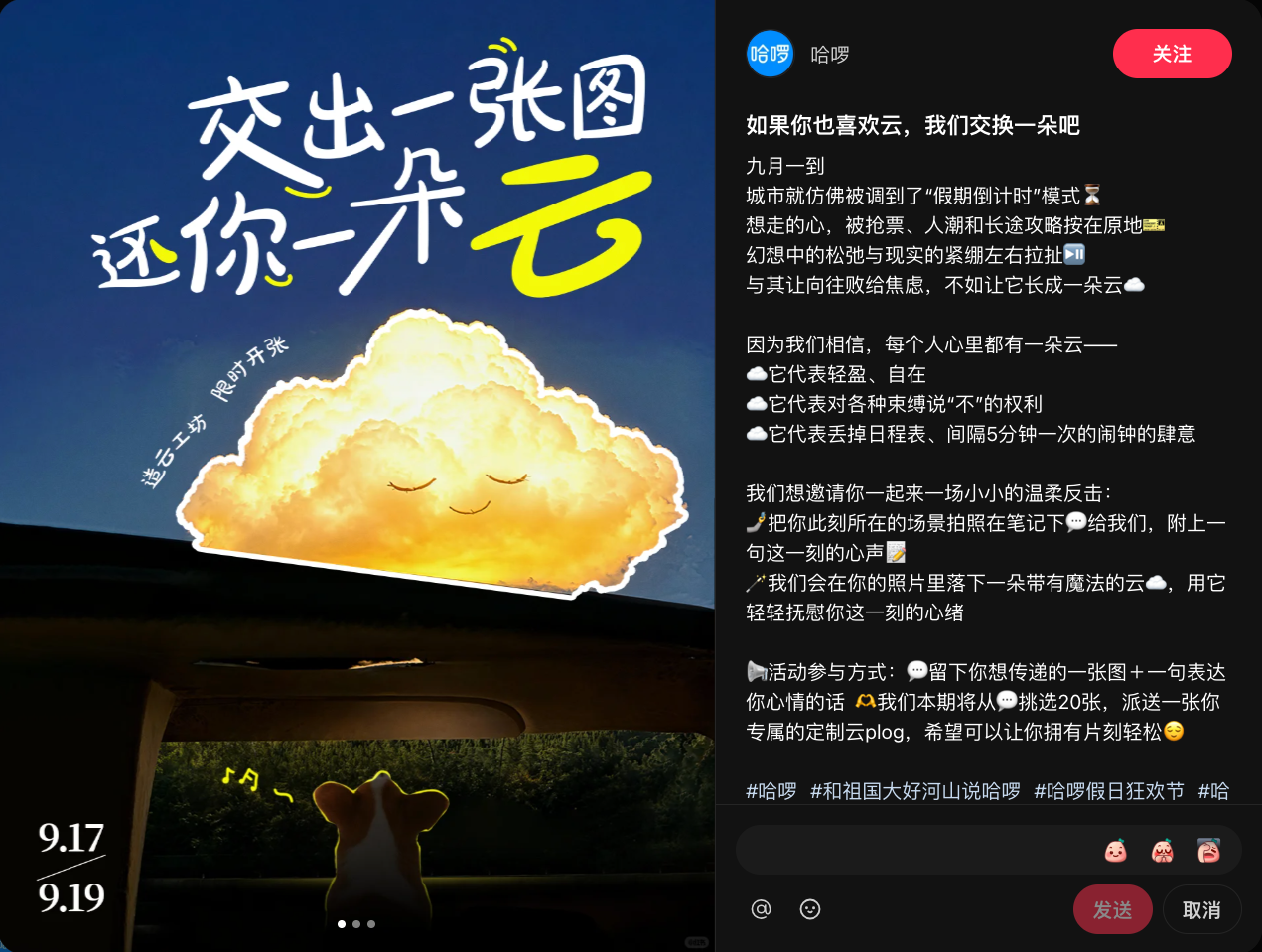 节日营销的核心痛点之一,是品牌与用户之间的“距离感”——单纯的优惠发放往往难以激发用户的主动参与和情感认同。哈啰此次通过“用户内容共创”设计,成功将用户从“营销受众”转变为”品牌传播者”。
