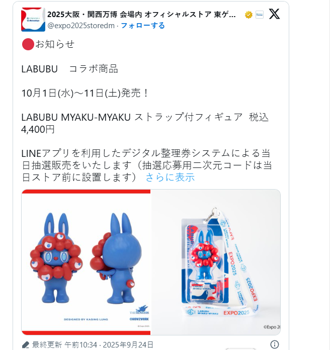 没错,就是那个风靡全球、老外连夜排队的“顶流”LABUBU,和曾被全网调侃长得像“病毒”的大阪世博会吉祥物脉脉!