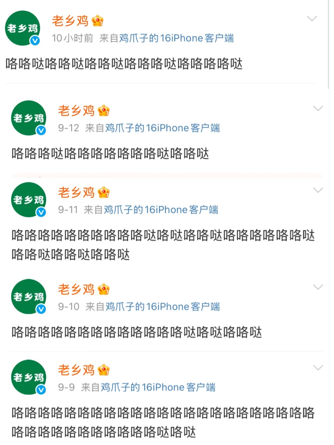 把“品牌”变成“人”,需要拆掉话术围墙,在官方宣传渠道、在产品介绍页面和用户“说人话”。老乡鸡的官方微博每天 10 点 50 分“咯咯哒”报时,偶尔吐槽自己上菜慢,比起其它一本正经发宣传信息的官方账号,老乡鸡用0媒介费常年占据微博热搜。