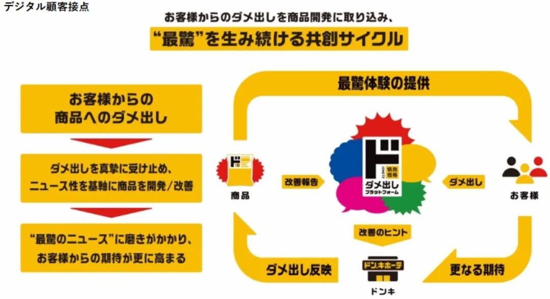 “吐槽殿堂”就是唐吉诃德收集消费者反馈的渠道。据唐吉诃德PB推广部负责人中武正樹的介绍,唐吉诃德会在每月末的周五,挑选10款重点产品,并将其在“吐槽殿堂”网站上公示,消费者则可以对选中产品做出评价。其中既有销量没达预期的商品,也有想进一步提高销量的人气商品。[5]